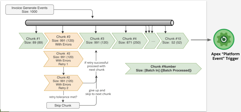 Great learning from this article. However I have a question.EventBus.TriggerContext.currentContext().setResumeCheckpoint is set at the last event in the chunk #2. And when the retry logic fires, does it pick up from the last event in the chunk #2 or all the events in the chunk #2?