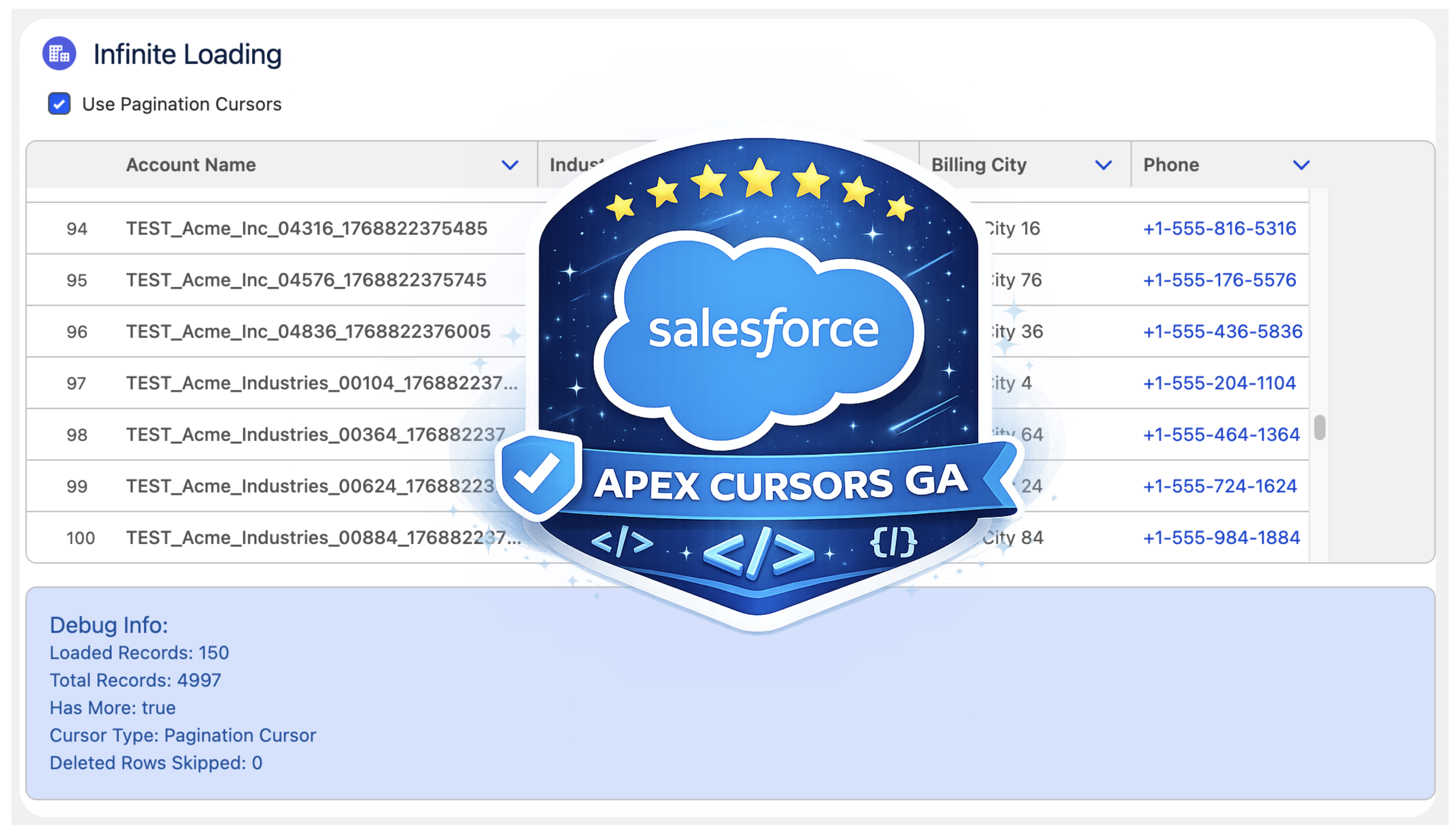 Last year, Salesforce launched the Beta of Apex Cursors, allowing you to traverse up to 50M records using SOQL-derived datasets – fast forward to the upcoming Spring ’26 release and it’s now GA! Since Beta, Salesforce has been busy introducing a whole new cursor type dedicated to UI use cases. In this blog, I will cover the new UI pagination cursor type and its differences from the standard cursors; included is an updated version of the sample I provided in last year’s blog – that allows you to use LWCs infinite scrolling component to explore both modes and try them out for yourself.