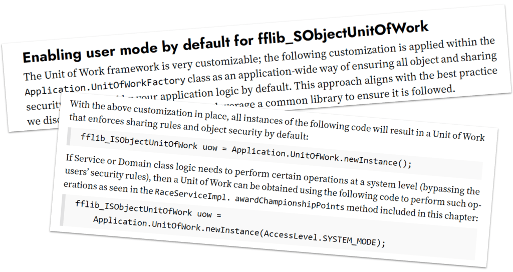 | Managing Additional Integration Permissions Code: integraiton-applink-callout | As an extension to integrations that flow from within Salesforce, as in the above use case, additional object and field access maybe required beyond that of the invoking user – without having permanently grant that user such permissions. | User Mode Plus |