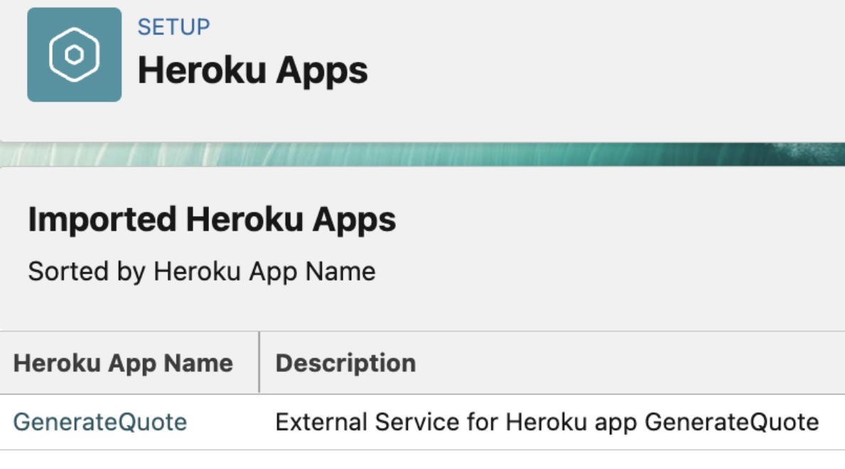Heroku AppLink has gone ahead and created Connected Apps and External Services for you. Note that the External Services show a source of Heroku, indicating these are managed by Heroku, not the org admin. In normal practice, you do not need to interact with these, but it is important to know they exist, especially as you should now become aware of all Connected Apps used in your org—right!