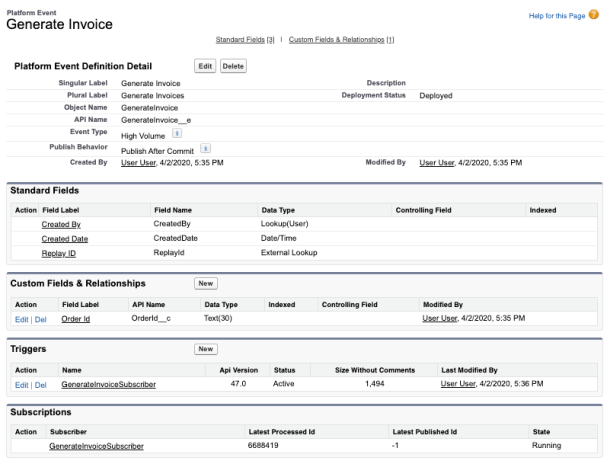 In order to avoid backlogs or spikes of invoices being processed, you want to maintain a continuous flow of the overall process. For this you create a Platform Event called Generate Invoice. This event can easily be sent by an admin / declarative builders who have perhaps setup some rules on the Orders object using Process Builder. - Resource Management