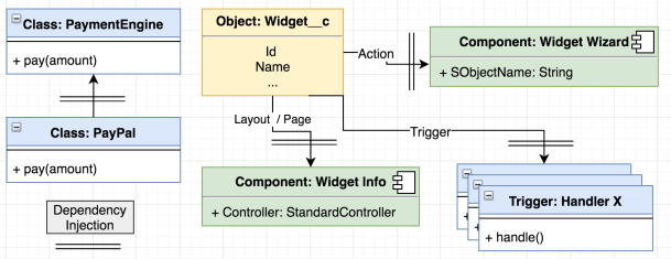 When developing within Salesforce, dependencies are formed in many ways, not just those made explicitly when writing code, but those formed by using declarative tools. Such as defining Actions and Layouts for example. This blog introduces a new open source library I have been working on called Force DI. The goal is to simplify and more importantly consolidate where and how to configure at runtime certain dependencies between Apex, Visualforce or Lightning component code.