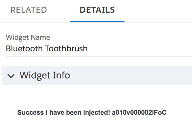 Finally, the injected Lightning Component widgetWizard looks like this:-